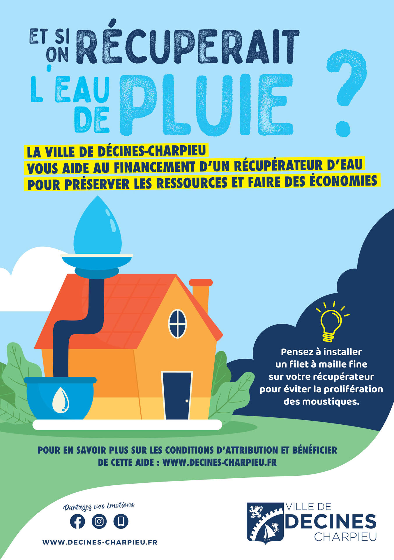 Jusqu’au 30 novembre, la Ville de Décines-Charpieu vous accompagne dans votre démarche écoresponsable en vous proposant une aide financière pour l’achat d’un récupérateur d’eau neuf, équipé d’un dispositif anti-moustiques.