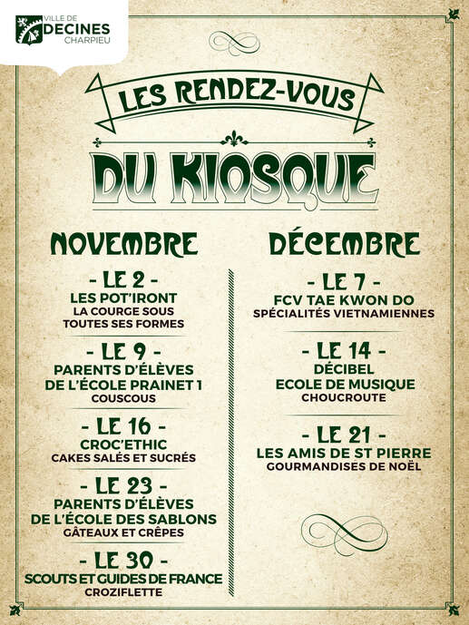 Chaque dimanche, le kiosque de la place Henri Barbusse s’anime grâce aux associations décinoises ! Dimanche 2 novembre, retrouvez les Pot'iront pour une vente de "Courge sous toutes ses formes"