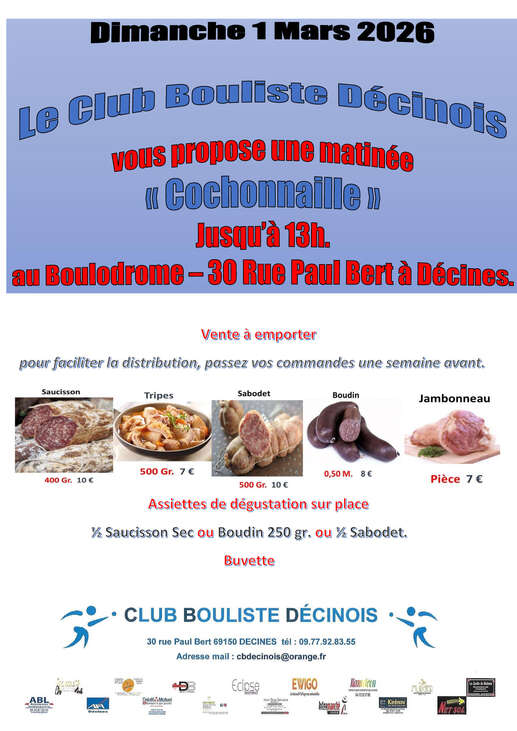 Le Club Bouliste Décinois organise sa matinée "Cochonnaille".