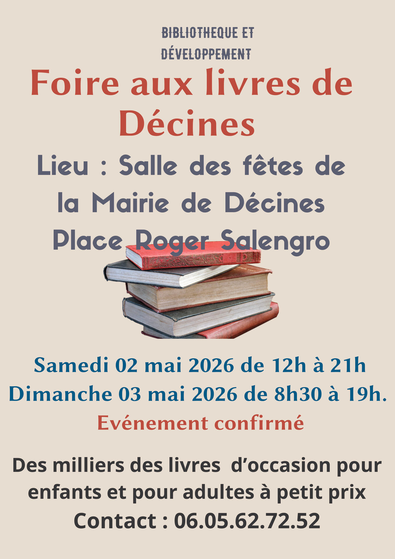 Bibliothèuqe et dévéloppement organise une foire aux livres, samedi 2 mai de 12h à 21h et dimanche 3 mai de 8h30 à 19h